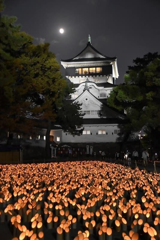 小倉城周辺で約3万個の竹灯籠及び竹紙灯籠を飾り、幻想的な空間を創出します。